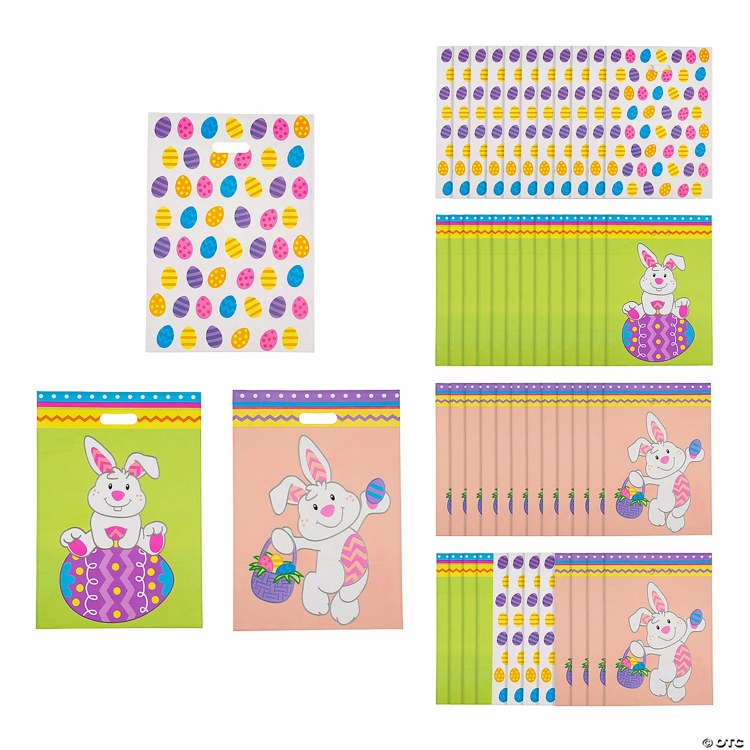• Perfect Size for Parties: These treat bags are just the right size for candies. Fill them up with tasty treats and hand them out as party favors at your next Easter party or holiday gathering! • Sweet Style: Display your delicious delights or party favors in style with these cute bags! You can make a decorative statement at any event with these bags and a few treats.• Say Thanks with Sweets: Are you looking for an easy way to thank the people in your life? These multipurpose bags filled with dainty bonbons, truffles, and mints are sure to delight the eyes as well as the palate.Product Description:Fill these creative bags with all sorts of Easter candy and springtime treats! Perfect for Easter egg hunts, pass them out at the beginning of the search and watch kids fill them up with toys or other Easter treasures. Great as gift bags, use to package your stuffed bunnies and Easter teddy bears, too. Your little bunnies are sure to go hoppity hop over these fun novelties! © OTCSize: 12″ x 17″Quantity: 50Material: Plastic.
