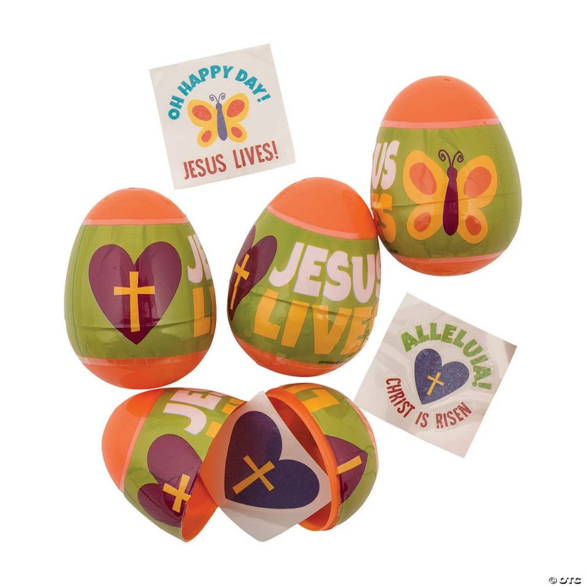 Wholesale ✨ 2 1/2″ Religious Tattoo-Filled Plastic Easter Eggs – 12 Pc. 🔔