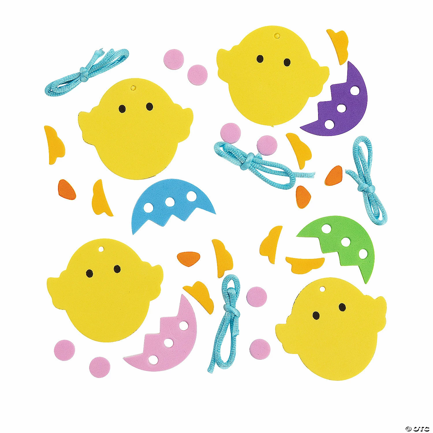 It doesn’t get much cuter on Easter than these adorable chicks peeking out of their eggs! This simple craft kit creates colorful Easter ornaments that kids can proudly display as handmade decorations. Use these cute craft kits to fill plastic eggs at an Easter egg hunt or place them in Easter baskets for kids. Includes self-adhesive foam pieces and satin cording. 2 1/4″ x 2″ Makes 12. All craft kits are pre-packaged for individual use. Kits include instructions. © OTCEaster Chick Egg Filler Instructions