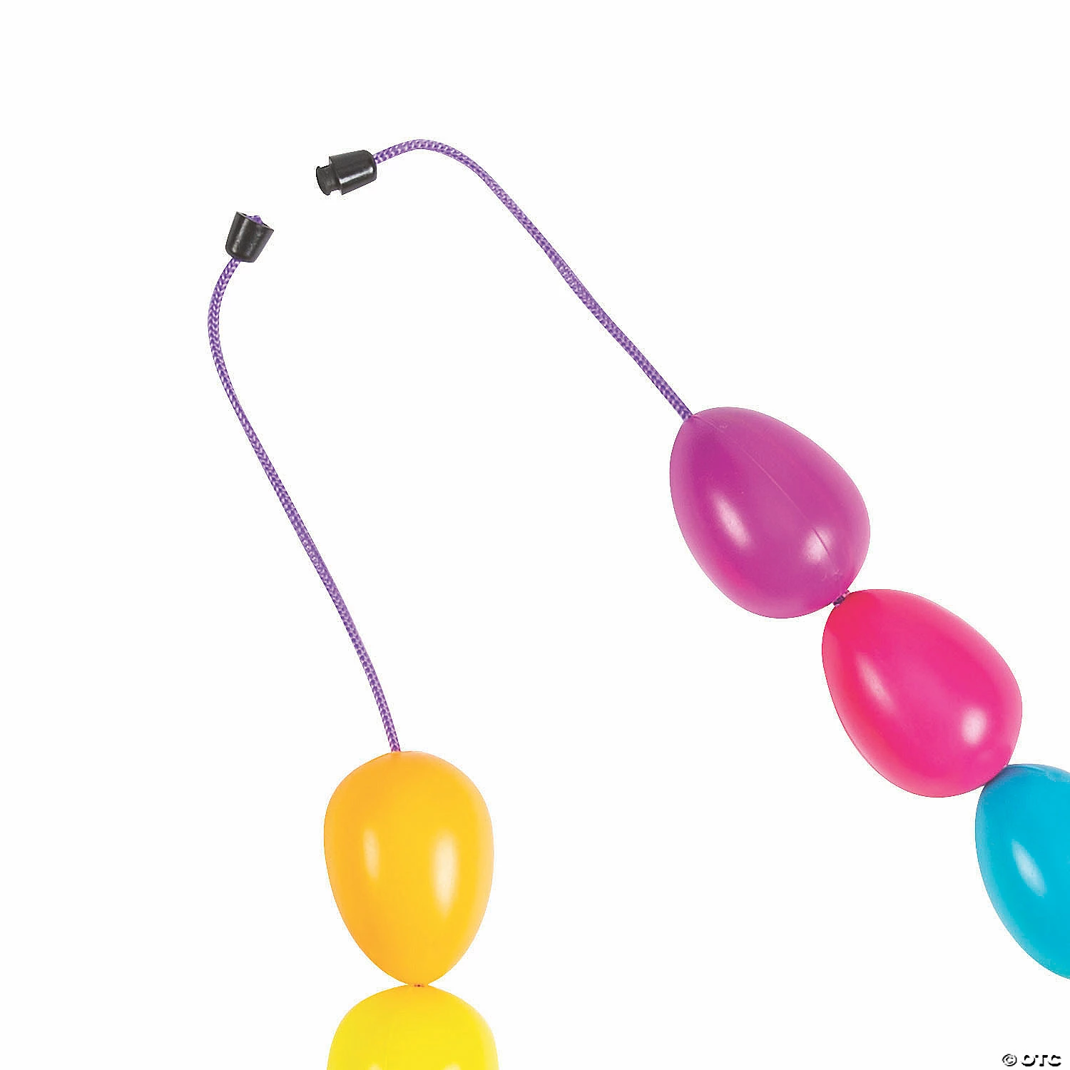These bright Easter egg necklaces are a wonderful addition to Easter baskets, party favor bags and egg hunt prizes! The eggs don’t open, they’re just for decoration, but they’re a fun Easter accessory any kid will be proud to wear! Plastic. 2″ eggs on a 30″ breakaway cord. © OTC