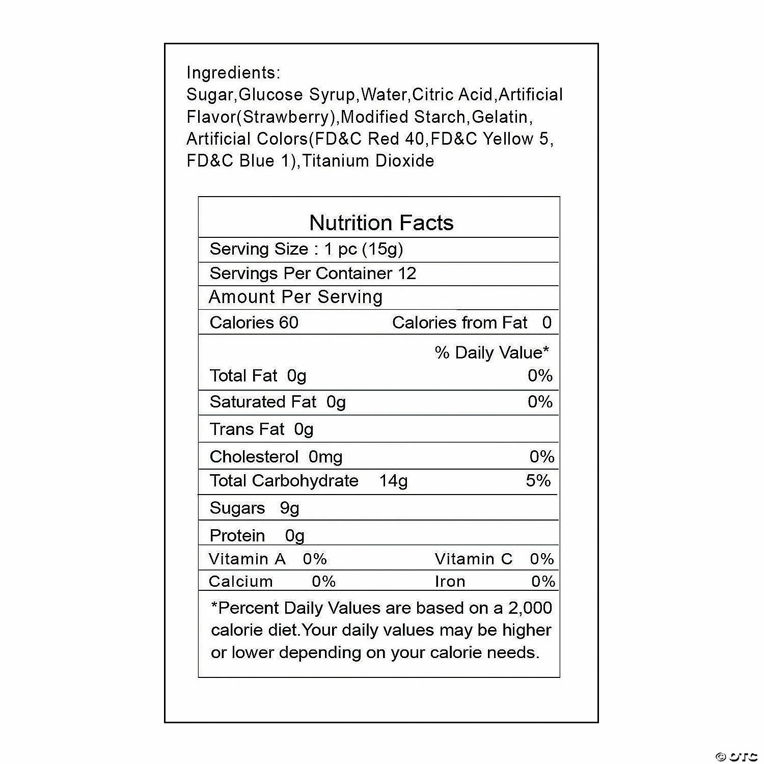 A sweet springtime treat, these Easter egg-shaped ring pops are hoppy additions to Easter baskets, Easter egg hunts and party favor bags. Kids love the strawberry-flavored lollipop rings that come in a rainbow of Easter egg designs. Individually wrapped. Total wt., 6 oz. Fat-free. © OTC• Candy is non-returnable. For more information, visit our “Return Policy” page located on our website.• Ingredient, nutrition, allergen and other product information are provided on our Web and Mobile sites for reference purpose only, without warranty or representation as to accuracy. Manufacturers adjust their labeling regularly and are solely responsible for the accuracy of the information. For general questions concerning these items, please contact our customer service at 800-228-0475.