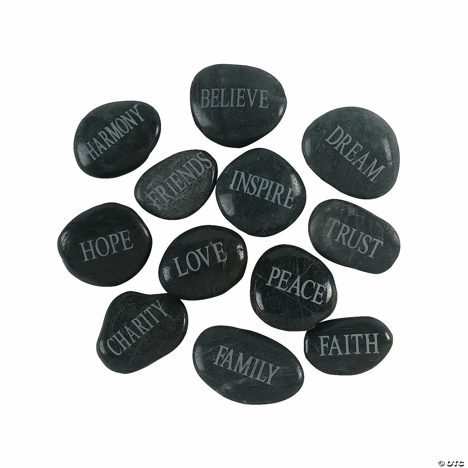 Thoughtful Easter gifts or a heartfelt addition to your church’s outdoor area or garden! Each 2 1/4″ – 2 3/4″ striking black rock is engraved with an inspirational word. Sayings include “Love,” “Hope,” “Trust” and many more. Add a fantastic touch to your backyard or place them in Easter baskets for a faith-inspired accent. Natural stones, sizes may vary.