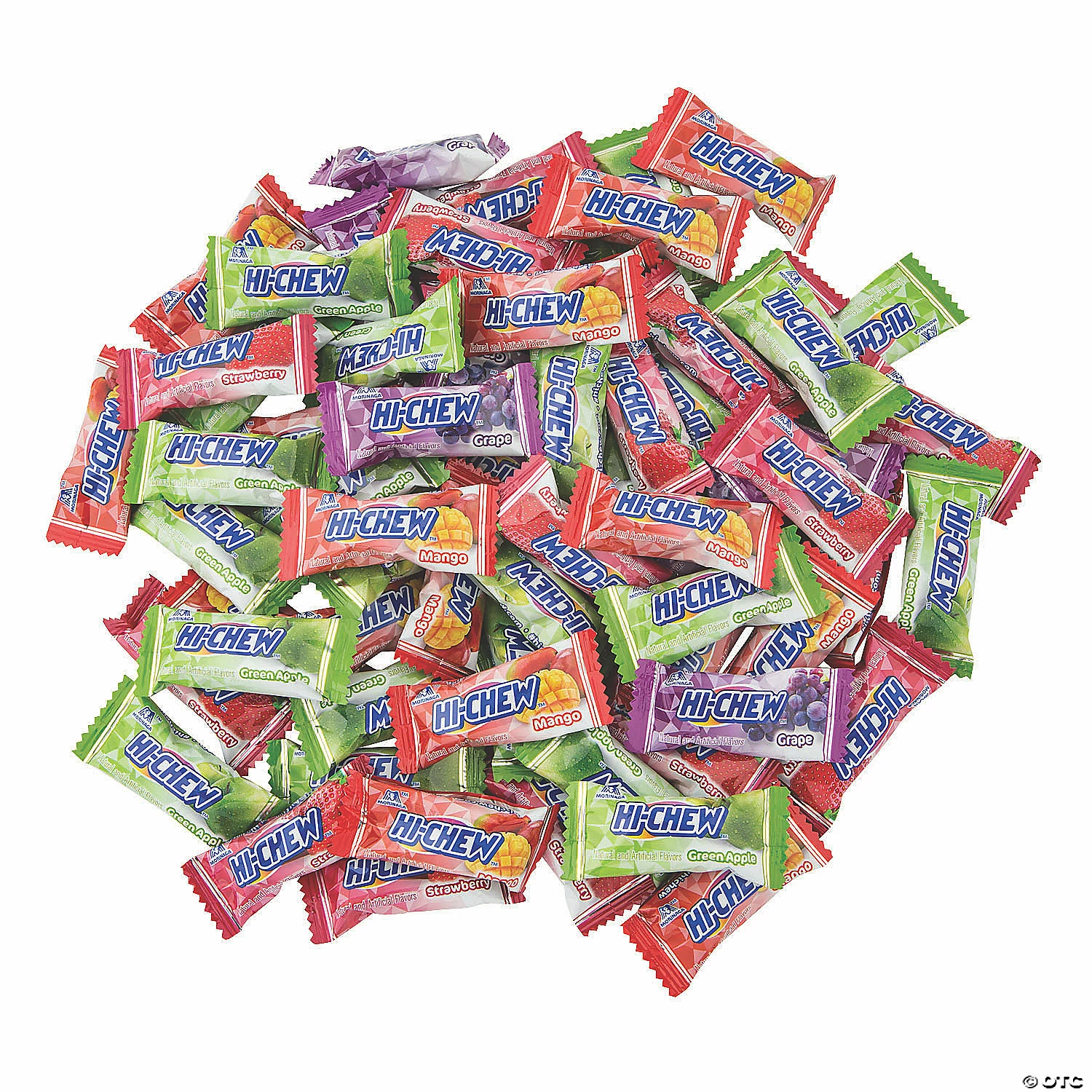 Have a hankering for that classic Hi-Chew™ flavor? This bag is full of that tasty, long-lasting chewy candy. Great for keeping candy dishes stocked around the home or around the office, they also make awesome candy favors and rewards. Assorted fruit flavors. Individually wrapped. (72 pcs. per unit) Total wt., 12.7 oz. Gluten-free. Nut-free.• Candy is non-returnable. For more information, visit our “Return Policy” page located on our website.• Ingredient, nutrition, allergen and other product information are provided on our Web and Mobile sites for reference purpose only, without warranty or representation as to accuracy. Manufacturers adjust their labeling regularly and are solely responsible for the accuracy of the information. For general questions concerning these items, please contact our customer service at 800-228-0475.