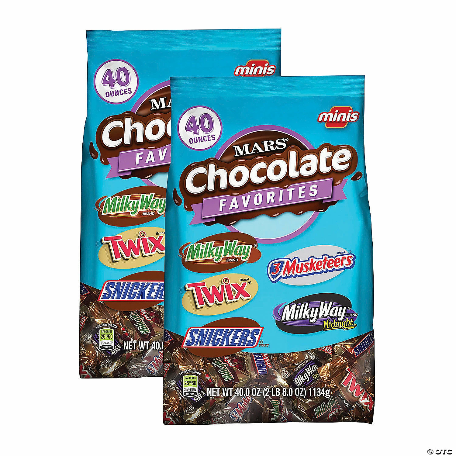 Featuring SNICKERS, TWIX, 3 MUSKETEERS, MILKY WAY Original and MILKY WAY Midnight Candy, this 40-ounce bag of MARS Chocolate Bars is a perfect way to always have a gift, surprise treat or chocolate snack on hand. Friends, family and trick-or-treaters alike will love the selection and chocolate goodness! And in a bag that’s big enough to share with everyone, you don’t have to worry about running out anytime soon. Candy is non-returnable. For more information, visit our “Return Policy” page located on our website.Special Shipping Information: This item ships separately from other items in your order. This item cannot ship to a P.O. Box. This item may be subject to additional processing days. ITEM IS NOT ELIGIBLE FOR EXPEDITED SHIPPING