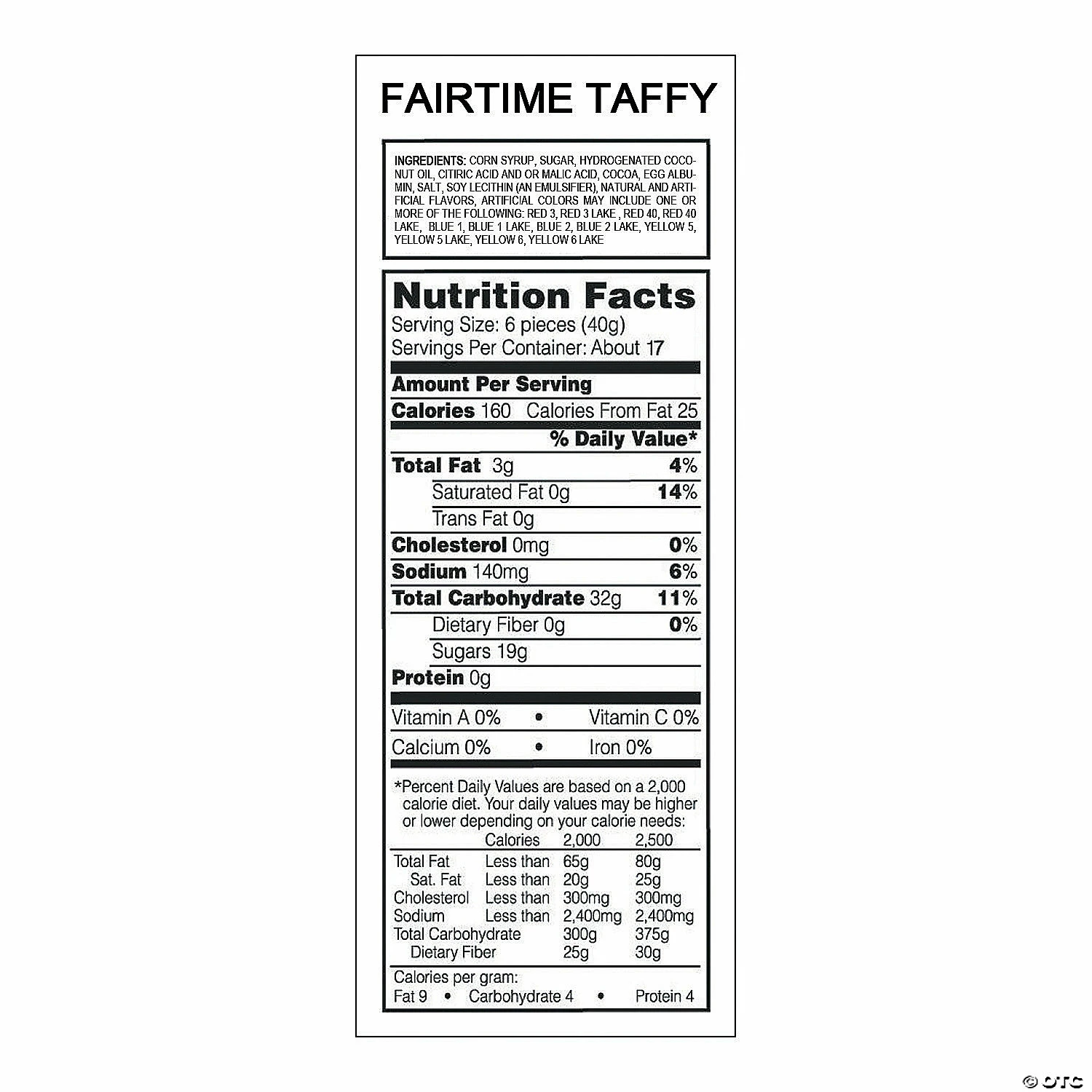 A sweet, chewy treat for any occasion! Add these mouth-watering fruit flavors to candy buffets at wedding receptions, toss into birthday party gift bags, stock up for Halloween trick-or-treaters or give away to party guests at holiday parties. Our bulk price lets you sink your teeth, not your wallet, into big batches of Salt Water Taffy to share with party guests, friends and family or just enjoy for yourself. Individually wrapped. Fruit flavors. (Approx. 193 pcs. per unit) Total wt., 3 lbs.• Fat-free. • Gluten-free.• Candy is non-returnable. For more information, visit our “Return Policy” page located on our website.• Ingredient, nutrition, allergen and other product information are provided on our Web and Mobile sites for reference purpose only, without warranty or representation as to accuracy. Manufacturers adjust their labeling regularly and are solely responsible for the accuracy of the information. For general questions concerning these items, please contact our customer service at 800-228-0475.